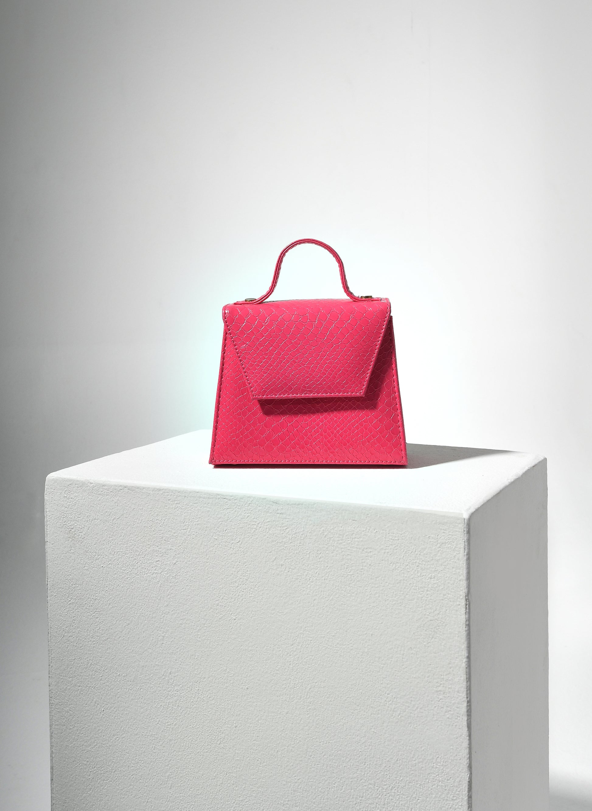 Crafted from ethical leather with a bold snake-print finish.